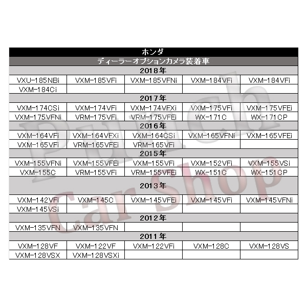 | ホンダ純正バックカメラ出力変換ハーネス | 当商品をご覧いただき、誠にありがとうございます。 ■下記適合車に適合致します。 ■ホンダディーラーオプションカメラ装着車ナビから RCA端子対応の社外ナビ に変更される場合に、純正のナビをそのまま使えるように出力変換する ハーネスとなります。 ■カプラ形状・適合が合えば、次に交換予定のお使い予定のナビの端子形状をご確認下さい (※上記商品説明画像に掲載、コネクタ形状5PIN、白色角型コネクターになります。) ■カメラを取り換える必要がなく、今装着中のバックカメラをそのままお使い頂けます。 ■カラーカメラ専用になります。 ■マルチビューバックガイドモニターには対応しておりませんのでご確認下さい。 ■バックに入れますと、自動でカメラ映像に切り替わり便利です♪ ■カプラ形状は画像に掲載しております。 ■取り付けは、カプラーON接続と、バック信号を取る為に簡単な配線作業が必要となります。 ■お取り付けに自信のない方は必ず業者様へご依頼お願い致します。 ※ガイドライン設定などはナビ本体に表示機能があれば表示されますが、 設定などはディラーや専門店でお確かめください。 ※ 配線を間違えますと、ショートしてナビが破損いたしますので、接続にはご注意ください。 ※マルチビューバックガイドモニターには対応しておりませんのでご確認ください。 ※説明書・保証書等は付属しておりません。 ※当製品をご使用したことによる、お車・ナビへの損傷・破損等に関しては一切の責任をとれませんので、ご了承の上ご使用ください。 【取り付け方法】 (1)当商品をバックカメラ出力カプラーへ接続 (2)赤色配線(エレクトロタップ)へバックランプ電源(+12V)へ接続 黒色配線を、アースへ接続 (3)ナビのバックカメラ入力端子へRCA端子をON!! ※入力PIN:5ピン(形状、白色カプラ) ※ナビへ出力:RCAオス端子 【参考適合一覧】 ホンダ/型式/年式/使用 インサイト/ZE2 ZE3/H25.6~H26.3/ナビ装着用スペシャルパッケージ装備車 ヴィゼル/RU1 RU2/H25.12~R3.4/ナビ装着用スペシャルパッケージ装備車 ヴィゼル/RV3 RV4 RV5 RV6/R3.4~/ナビ装着用スペシャルパッケージ装備車 ヴィゼルハイブリッド/RU3 RU4/H25.12~R3.4/ナビ装着用スペシャルパッケージ装備車 N-ONE/JG1 JG2/H24.11~R2.3/ナビ装着用スペシャルパッケージ装備車 N-ONE/JG3 JG4/R2.11~/ナビ装着用スペシャルパッケージ装備車 N-BOXスラッシュ/JF1 JF2/H26.12~/ナビ装着用スペシャルパッケージ装備車 N-BOX(カスタム含む)/JF1 JF2/H23.12~H29.8/ナビ装着用スペシャルパッケージ装備車 N-BOX(カスタム含む)/JF3 JF4/H29.9~/ナビ装着用スペシャルパッケージ装備車 N-BOX+(カスタム含む)/JF1 JF2/H24.7~H29.8/ナビ装着用スペシャルパッケージ装備車 N-VAN/JJ1 JJ2/H30.7~/ナビ装着用スペシャルパッケージ装備車 N-WGN(カスタム含む)/JH1 JH2/H25.11~R1.7/ナビ装着用スペシャルパッケージ装備車 N-WGN(カスタム含む)/JH3 JH4/R1.8~R4.9/ナビ装着用スペシャルパッケージ装備車 オデッセイ(アブソルート、ハイブリット含む)/RC1RC2 RC4/H25.11~H29.11/ナビ装着用スペシャルパッケージ装備車 オデッセイ(アブソルート、ハイブリット含む)/RC1RC2 RC4/H29.12~R2.10/"ナビ装着用スペシャルパッケージ装備車 (マルチビューカメラ無し)" グレイス/GM4 GM5 GM6 GM9/H26.12~R2.7/ナビ装着用スペシャルパッケージ装備車 CR-Z/ZF2/H24.10~H29.1/ナビ装着用スペシャルパッケージ装備車 CR-V/RW1 RW2 RT5 RT6/H30.8~/ ジェイド/FR4 FR5/H27.2~/ナビ装着用スペシャルパッケージ装備車 シビック(タイプR含む)/FC1 FK7 FK8/H29.9~/ナビ装着用スペシャルパッケージ装備車 シャトル(ハイブリッド含む)/GK8 GK9 GP7 GP8/H27.5~/ナビ装着用スペシャルパッケージ装備車 ステップワゴン/RK1 RK2/H24.12~H27.4/ナビ装着用スペシャルパッケージ装備車 ステップワゴン スパーダ/RK5 RK6 H24.12~H27.4/ナビ装着用スペシャルパッケージ装備車 ステップワゴン(スパーダ含む)/RP1 RP2 RP3 RP4/H27.4~H29.9/ナビ装着用スペシャルパッケージ装備車 ステップワゴン(スパーダ含む)/RP1 RP2 RP3 RP4 RP5/H29.10~/"ナビ装着用スペシャルパッケージ装備車 (マルチビューカメラ無し)" フィット/GE6 GE7 GE8 GE9/H24.6~H25.8/ナビ装着用スペシャルパッケージ装備車 フィット/GK3 GK4 GK5 GK6/H25.9~H29.6/ナビ装着用スペシャルパッケージ装備車 フィット(ハイブリッド含む)/GK3 GK4 GK5 GK6 GP5 GP6/H29.7~R2.2/ナビ装着用スペシャルパッケージ装備車 フィット(ハイブリッド含む)/GR1 GR2 GR3 GR4 GR5 GR6 GR7 GR8/R2.2~/ナビ装着用スペシャルパッケージ装備車 フィットハイブリッド/GP1 GP4/H24.6~H25.8/ナビ装着用スペシャルパッケージ装備車 フィットハイブリッド/GP5 GP6/H25.9~H29.6/ナビ装着用スペシャルパッケージ装備車 フィットシャトル/GG7 GG8/H24.7~H27.4/ナビ装着用スペシャルパッケージ装備車 フィットシャトルハイブリッド/GP2/H24.7~H27.4/ナビ装着用スペシャルパッケージ装備車 フリード/GB3 GB4/H24.12~H28.9/ナビ装着用スペシャルパッケージ装備車 フリード/GB5 GB6 GB7 GB8/H28.9~/ナビ装着用スペシャルパッケージ装備車 フリードハイブリッド/GP3/H24.12~H28.9/ナビ