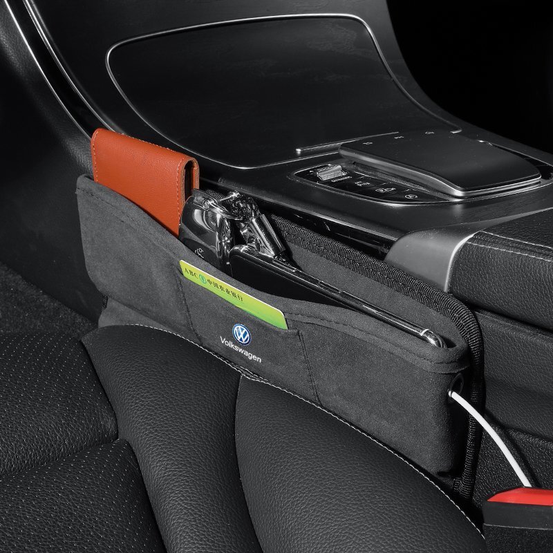 フォルクスワーゲン 車シートサイドポケット 収納ボックス 差し込みタイプ 車隙間収納 アルカンターラ 2個セット 收藏