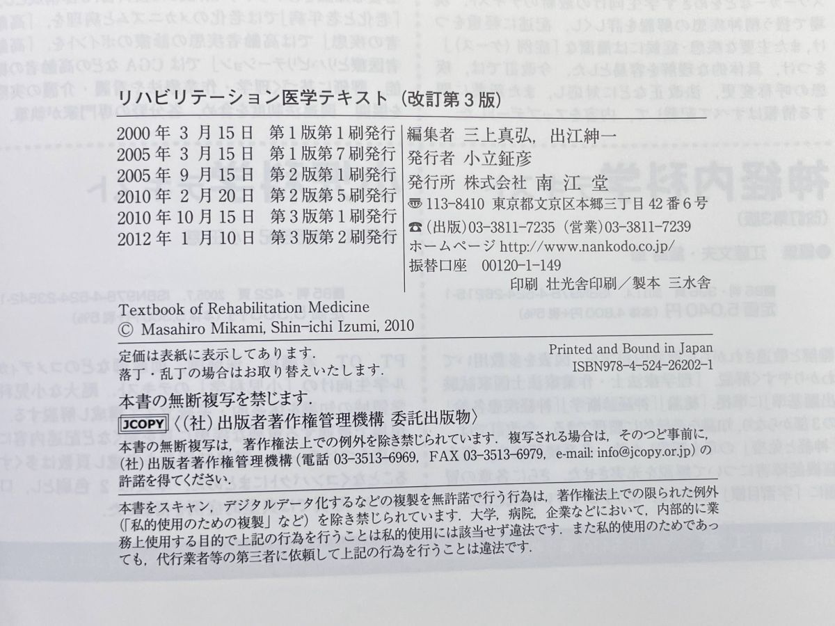 リハビリテーション医学テキスト 改訂第3版 三上真弘,出江紳一 平成24年 2012年発行【z178841】 收藏
