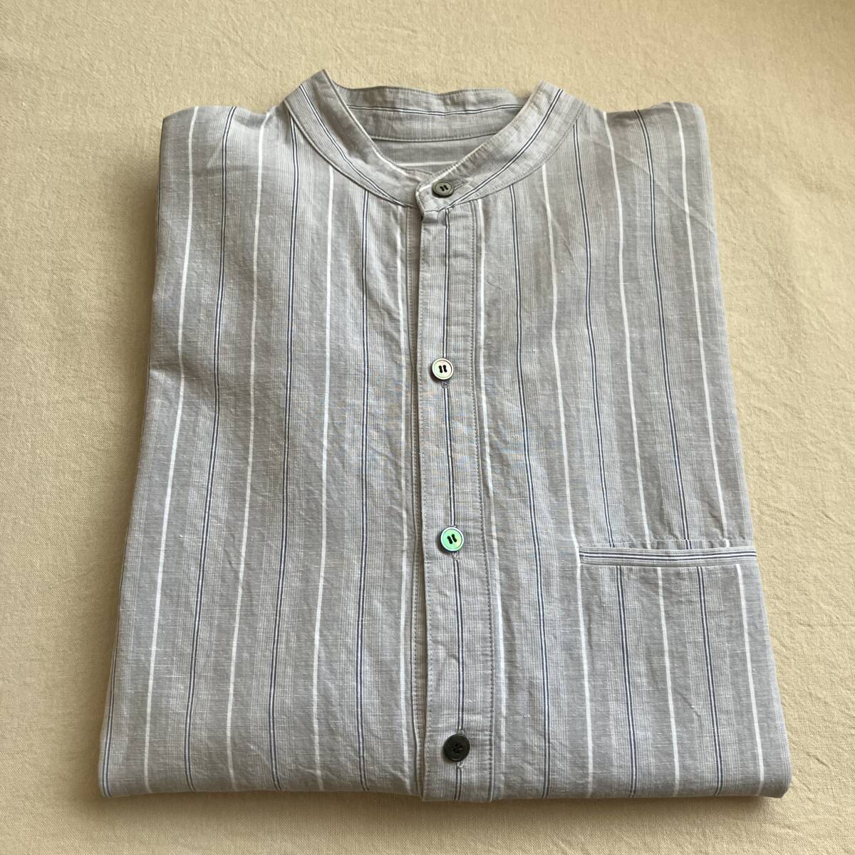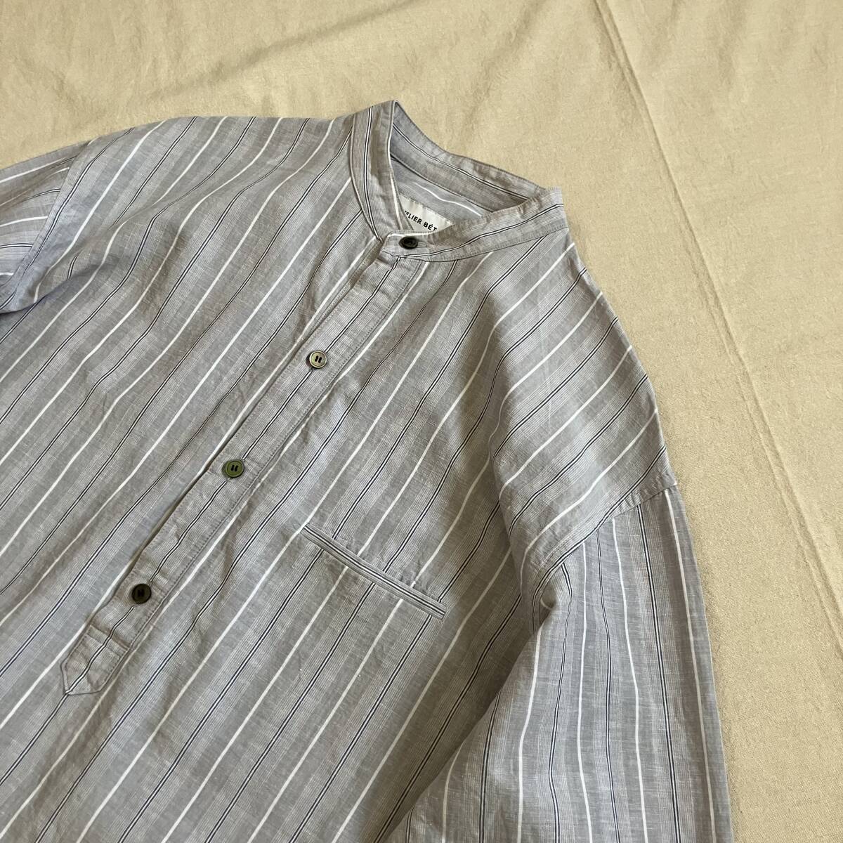 【ATELIER BETON アトリエベトン STRIPE BAND COLLAR SHIRT バンドカラーシャツ プルオーバーシャツ size 2】 收藏