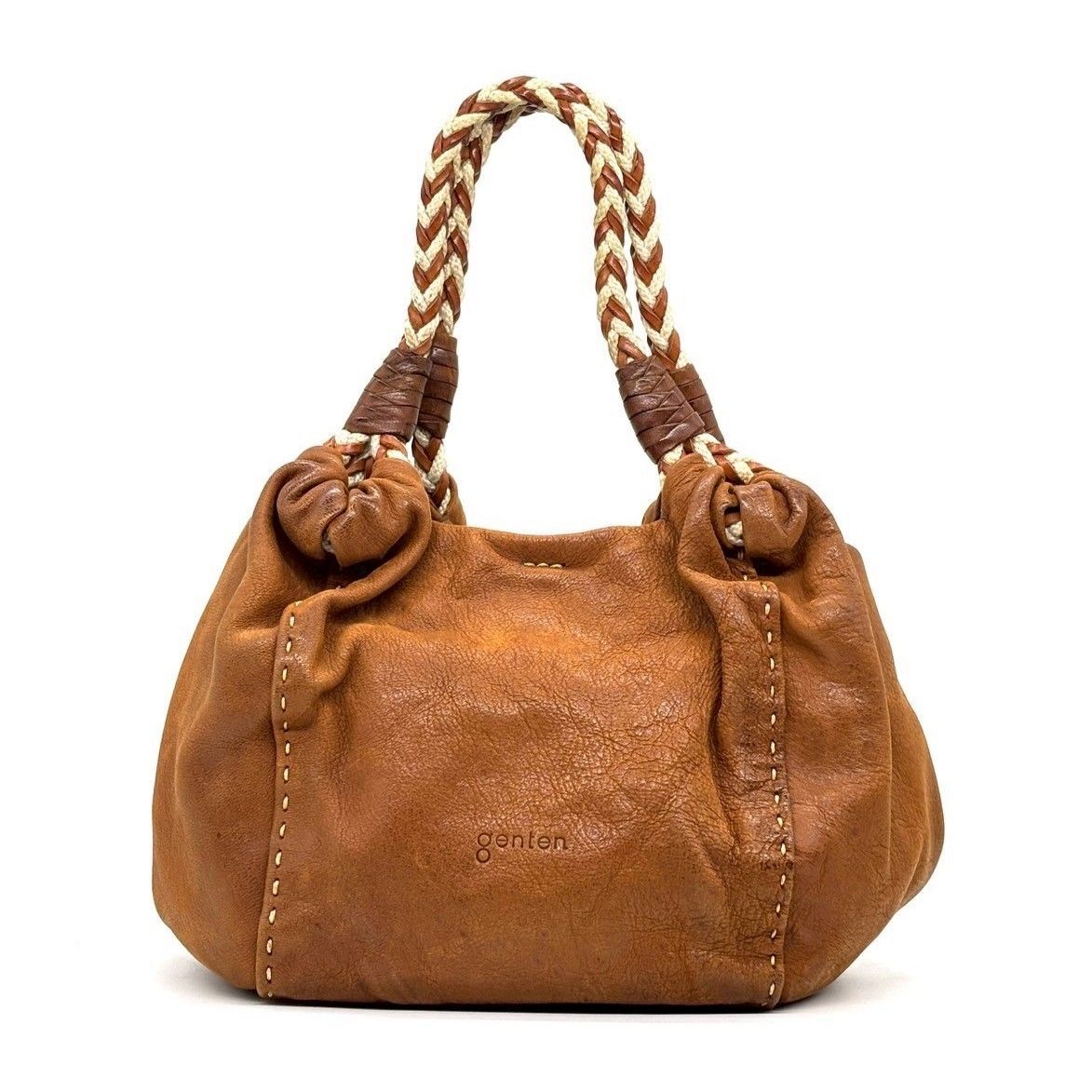 genten ゲンテン ハンドバッグ レザー 編み込み ハンドル ステッチ 本革 ナチュラル レディース ブラウン 收藏