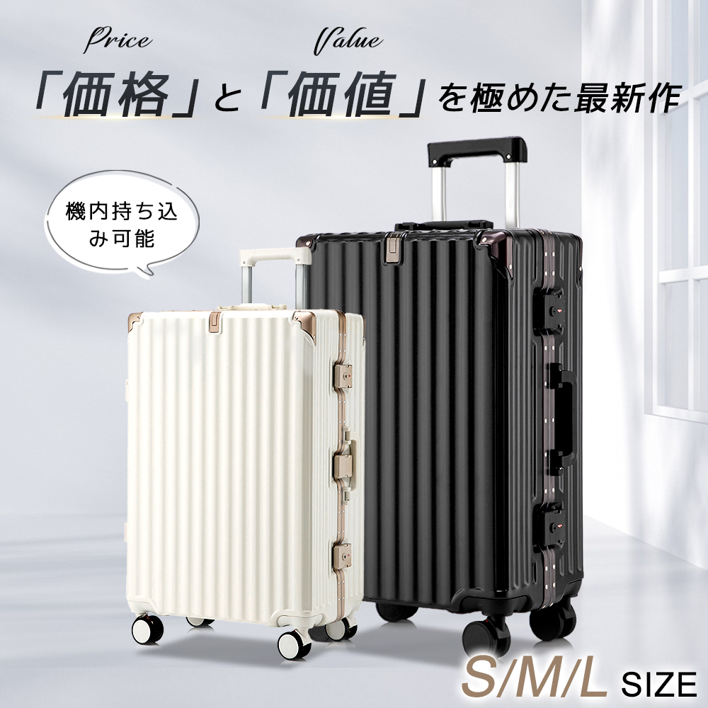 スーツケース 機内持ち込み 軽量 大型 アルミフレーム 耐衝撃最強 ストッパー付き 静音 キャリーケース Lサイズ ブラック 收藏