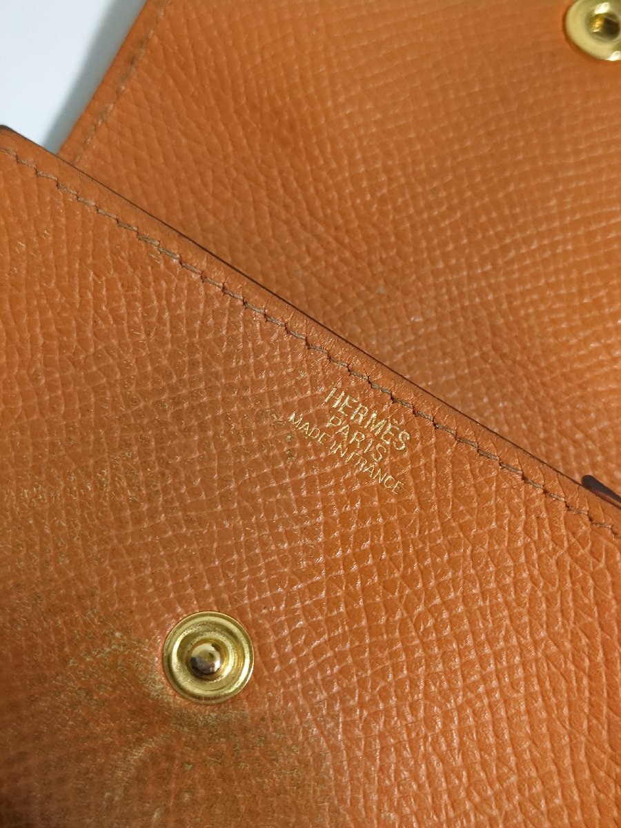 S2687●送料198円~ HERMES エルメス ルヴァンキャトル コインケース 小銭入れ 仕切り付き オレンジ系 收藏