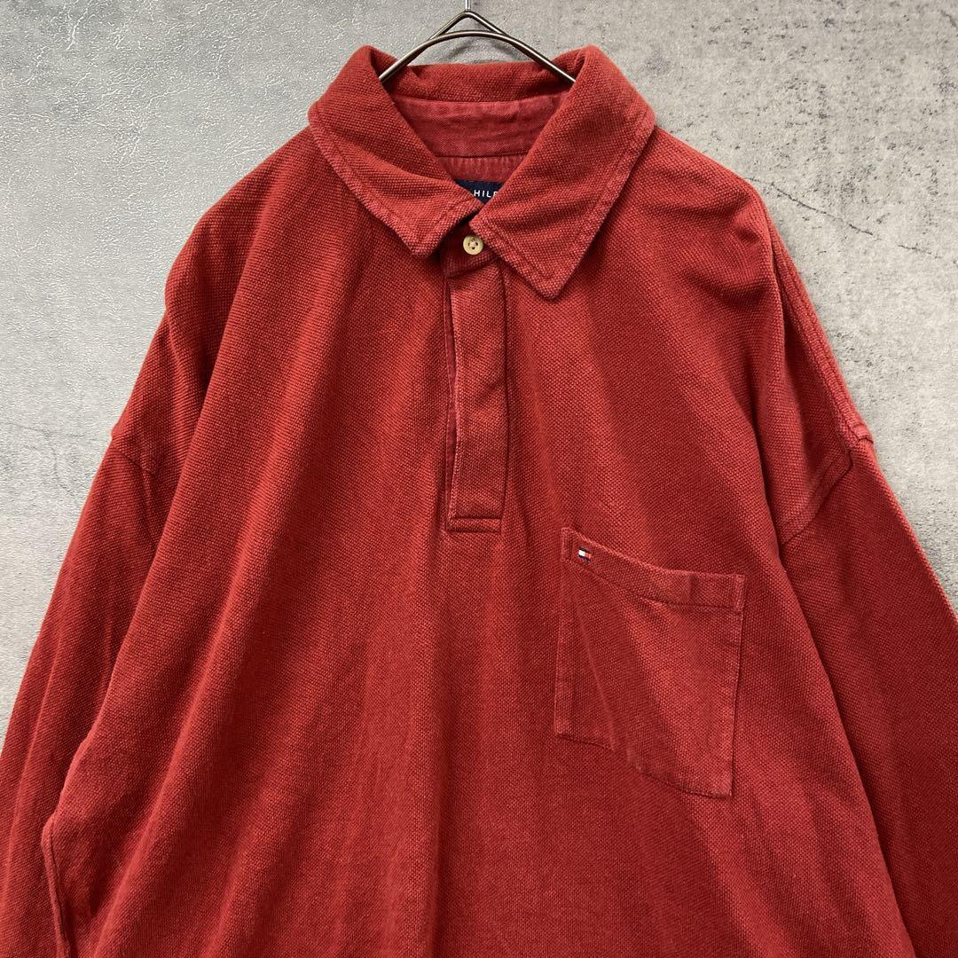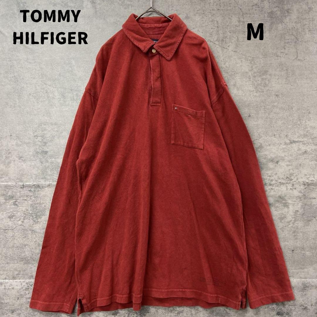 トミーヒルフィガー 長袖ポロシャツ M 赤 無地 シンプル 定番人気【5929】 收藏