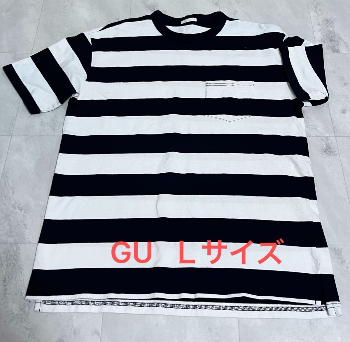 美品!GU ジーユー ワイドボーダービッグT メンズ L 341-314514 白 黒 收藏