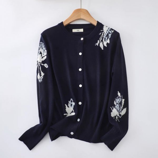wnm ウール綿混 カーディガン ニット セーター 羽織物 アウター フリーサイズ ゆったり 肌触り抜群 Vネック 織り込み花柄1 收藏