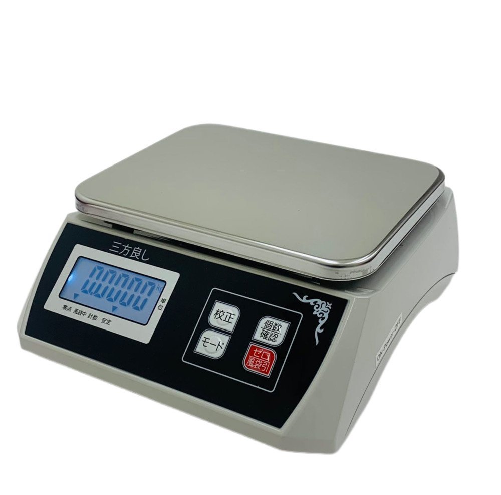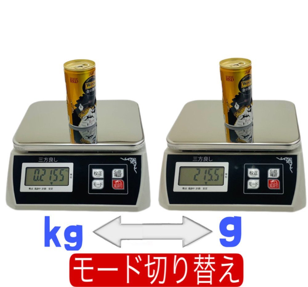 •液晶大画面LED表示 kg/g単位変換機能 水準器・風袋引き機能 ステンレス製(SUS304)計量皿仕様