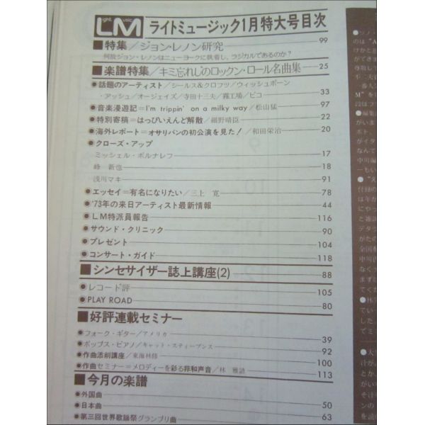 雑誌 ライトミュージック 昭和48年1月号 ジョン・レノン研究, 楽譜特集 キミ忘れじのロックン・ロール名曲集 付録ナシ 1973年 收藏