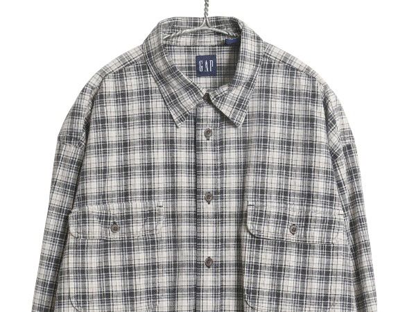 90s オールド ギャップ チェック 長袖 シャツ メンズ XL 長袖シャツ ヘビーウェイト コットン ポケット付き 黒 マルチカラー 大きいサイズ 收藏