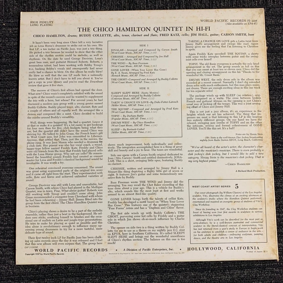 【80】CHICO HAMILTON QUINTET IN HI FI 昭和レトロ レコード 動作未確認品 汚れ 破れ シミ 有り ヴィンテージ品 コレクター必見 收藏