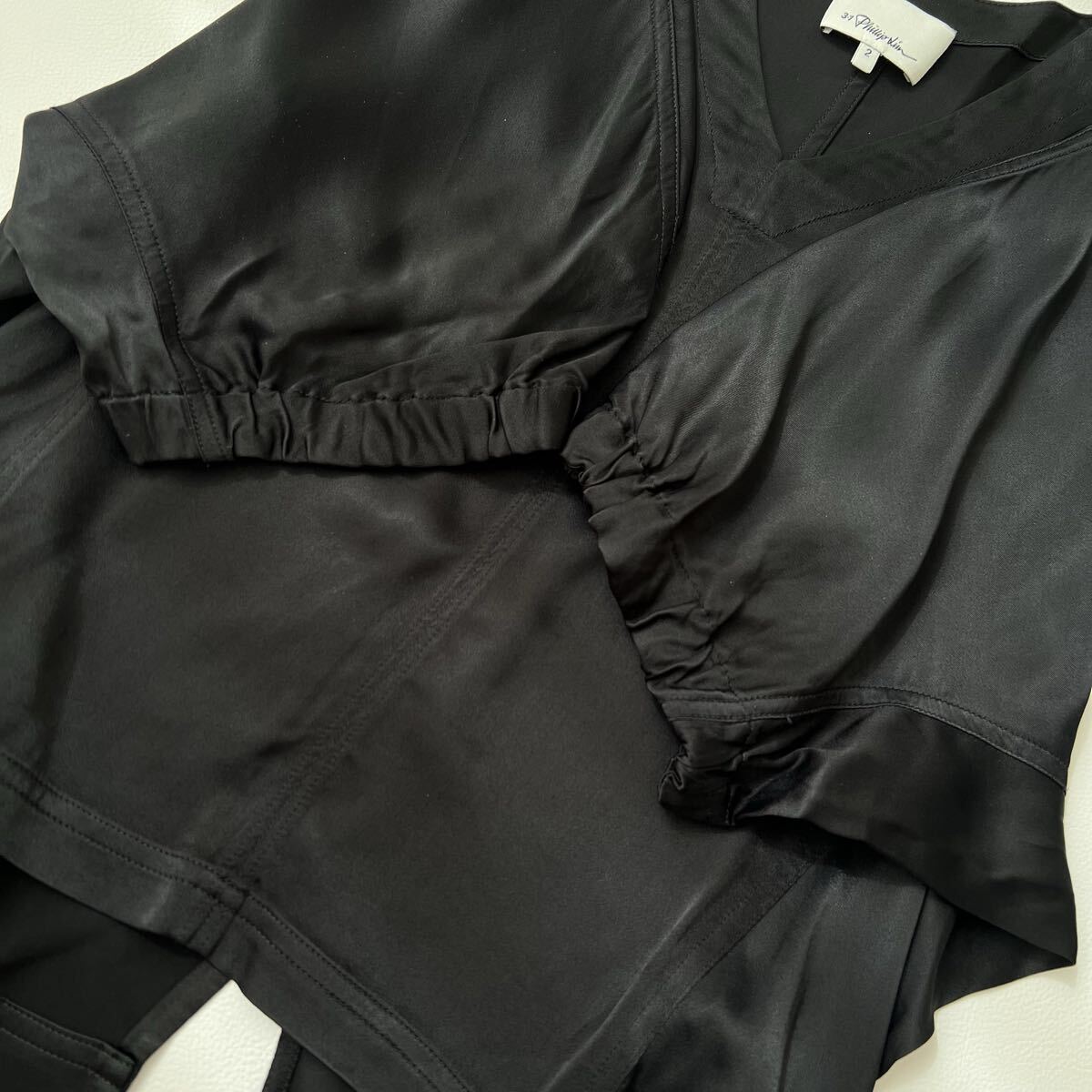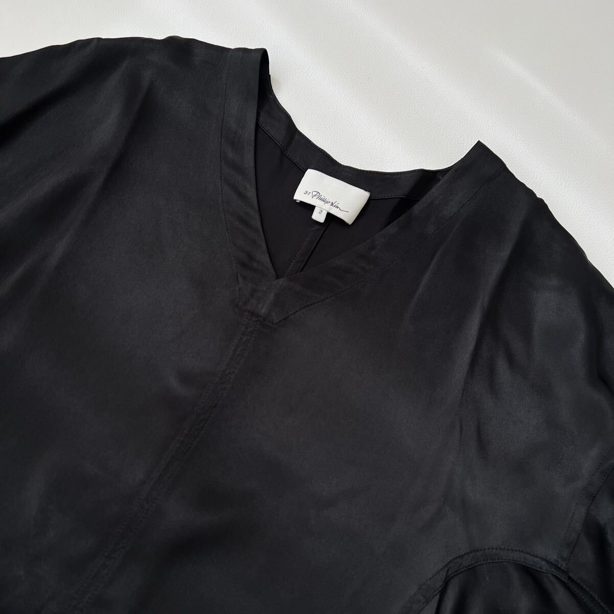 良品 3.1 phillip lim スリーワンフィリップリム ブラウス プルオーバー トップス 落ち感 ブラック 光沢感 Vネック レーヨン 2 レディース 收藏