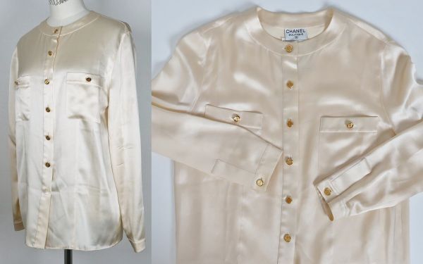 VINTAGE CHANEL coco buttons silk blouse size 38 シャネル ココマーク ボタン シルク ブラウス シャツ c0129 收藏