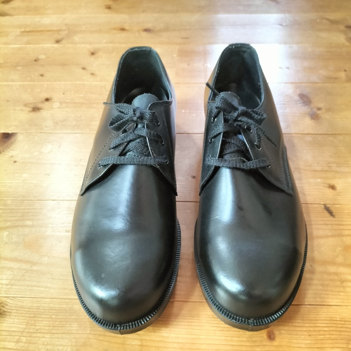 MIDORIの安全靴で26.5cmになります。海外メーカーではなく安心の日本メーカーミドリ安全です。旧タイプですが物価高の昨今です割安な未使用品をいかがですか!また、本革の短靴でシンプルな旧タイプですのでタウンユースとして育てていただければビンテージや古着に合うアイテムにもなるかと思います。