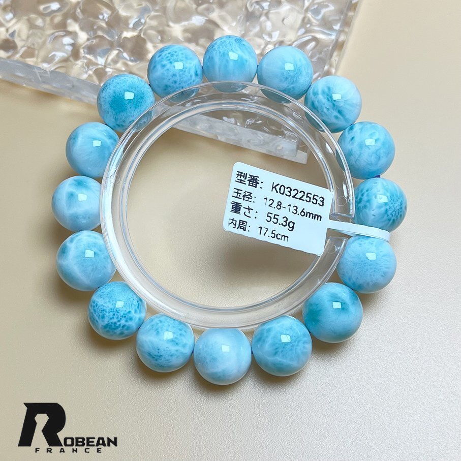 高級 EU製 定価41万円★ROBEAN・ドミニカ共和国産のラリマー★パワーストーン ブレスレット 天然石 開運 金運 綺麗 約12.8-13.6mm K0322553 收藏