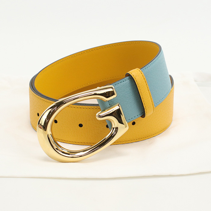 【中古・未使用】 GUCCI グッチ ベルト 709954 DJ24G バイカラー Gバックル ユニセックス ブルー 爆買 收藏