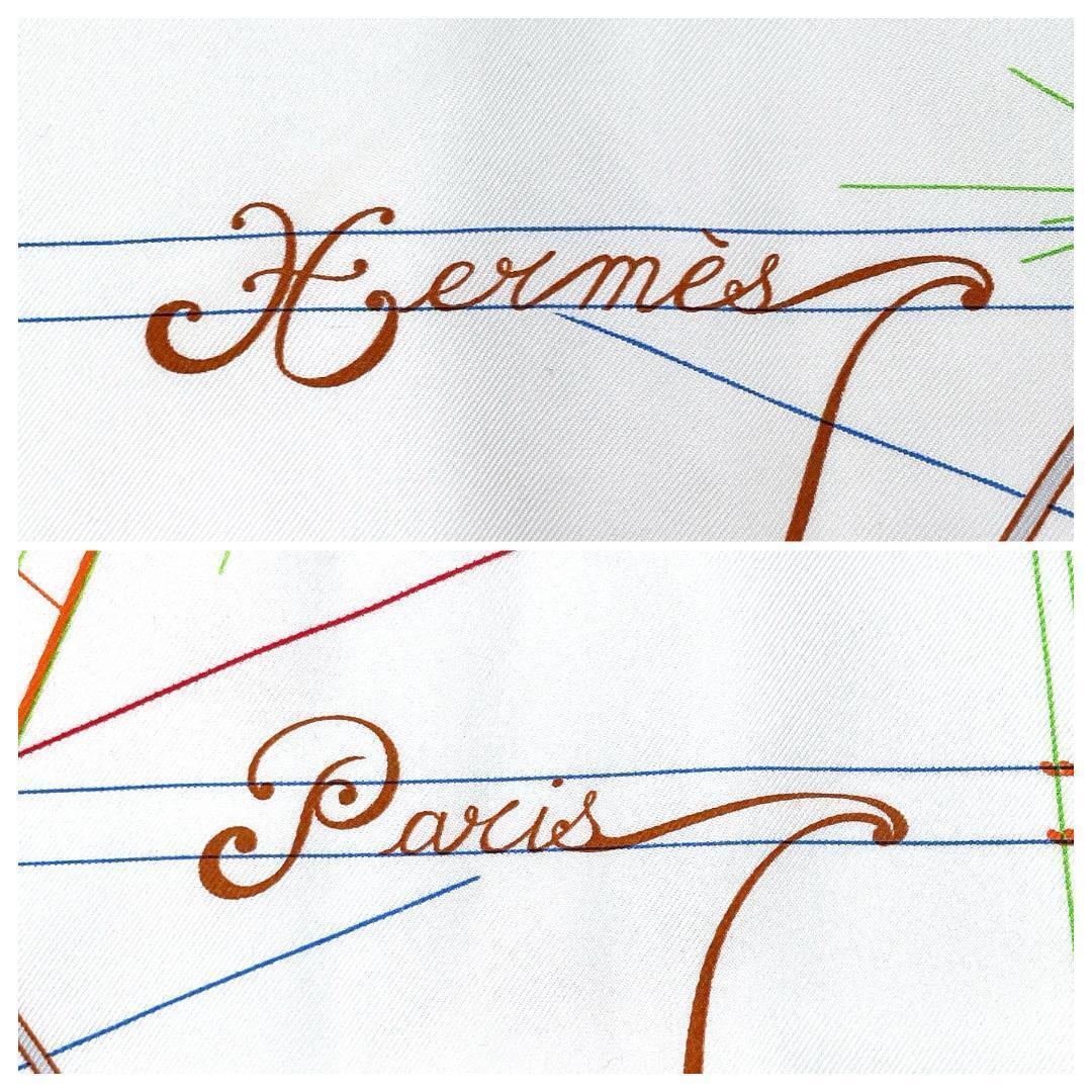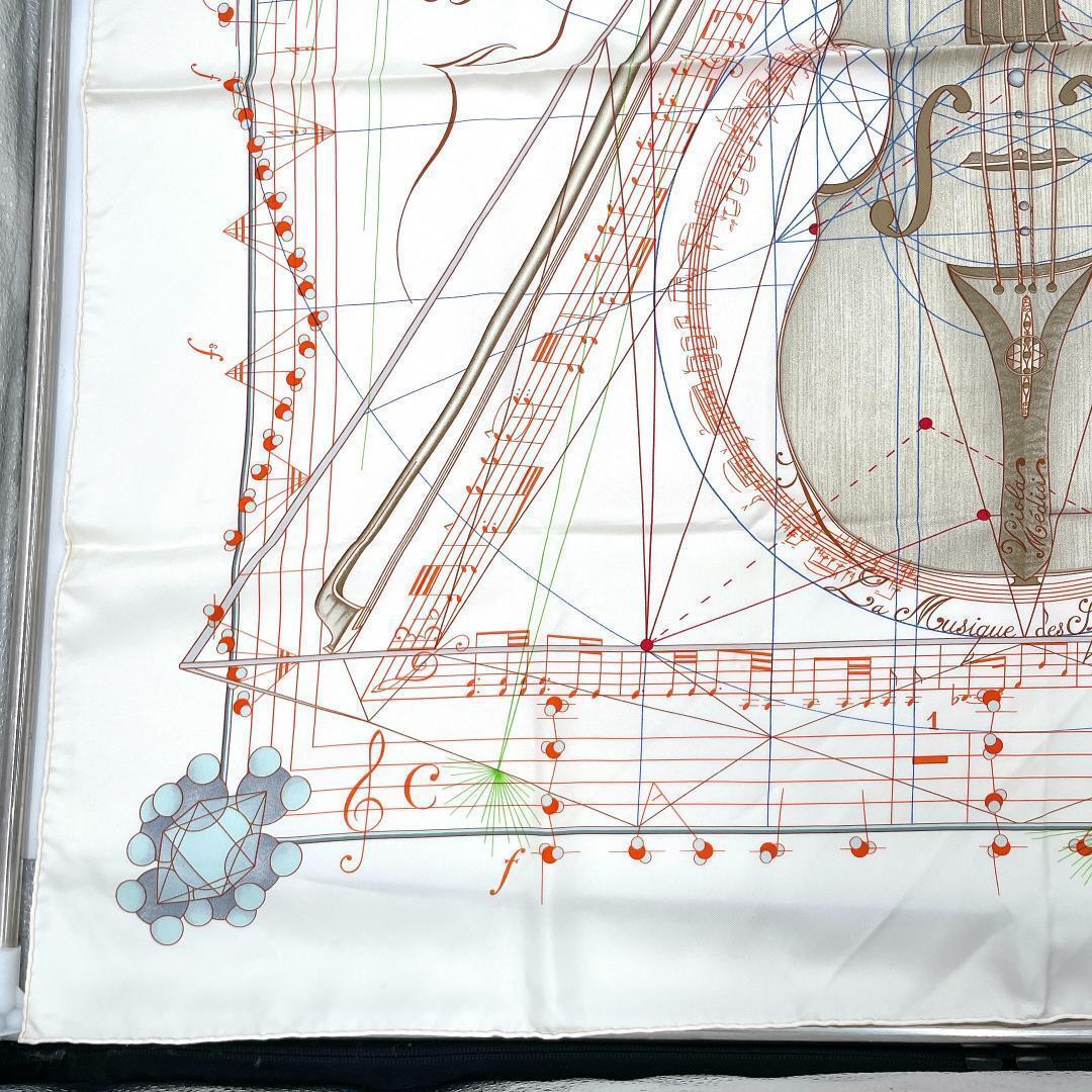 ■極美品■ HERMES エルメス カレ90 La Musique des Spheres 球体の奏でる音楽 スカーフ グリーン シルク レディース ストール 大判 緑系 收藏