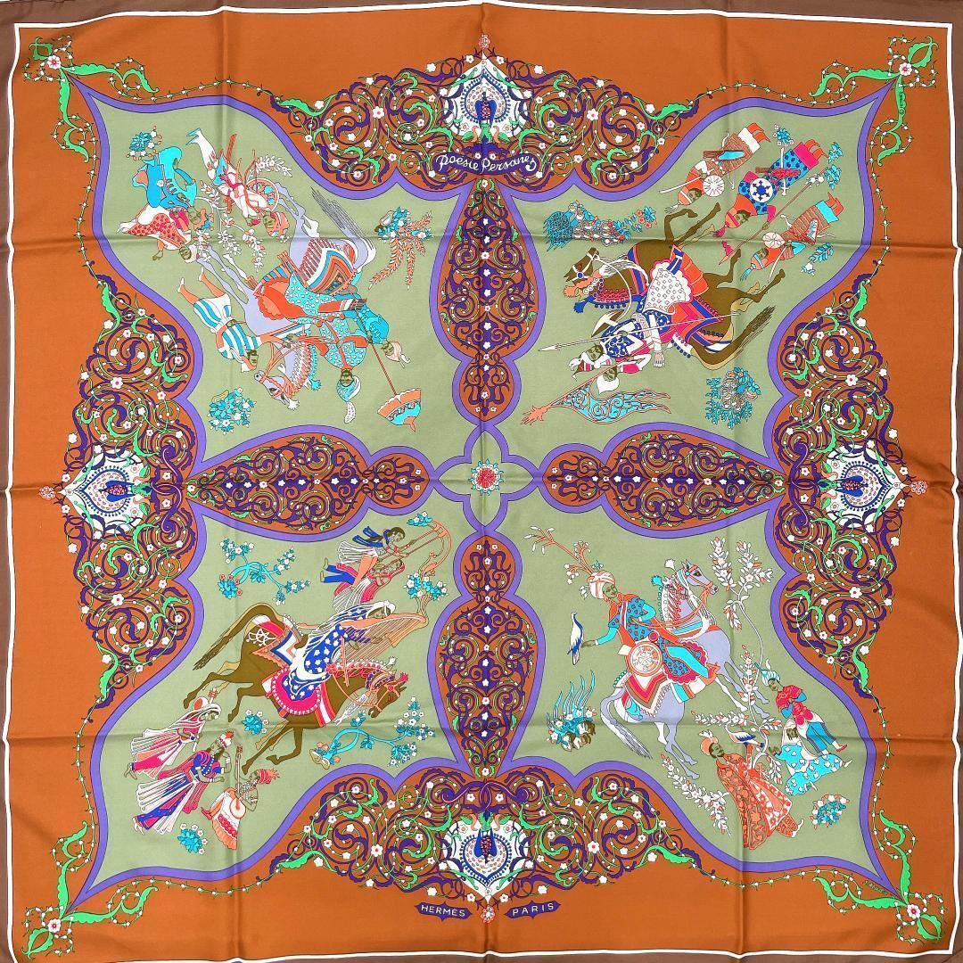 ■美品■ HERMES エルメス カレ90 poesie persane ペルシャの詩 レディース スカーフ 大判 ストール ショーツ シルク ブラウン 茶色系 收藏