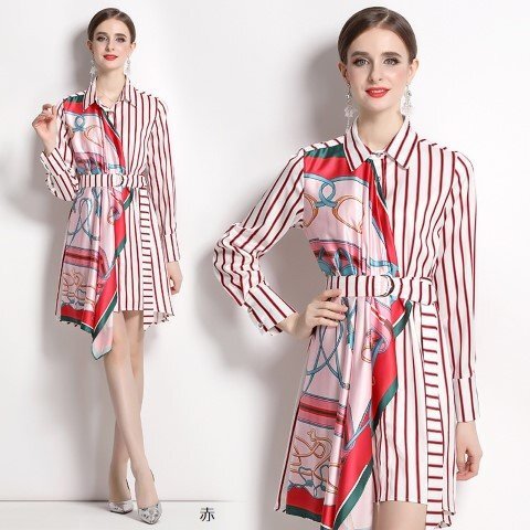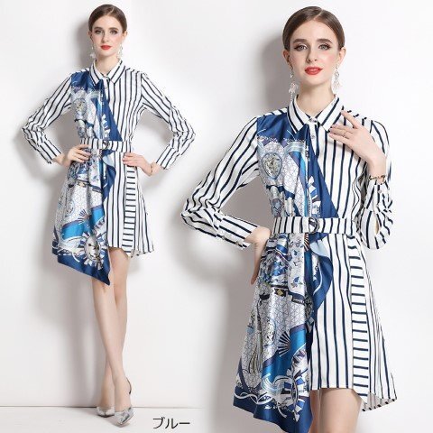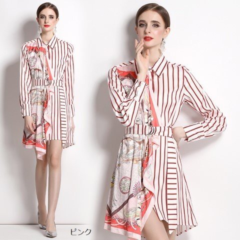 ミニワンピース ショート丈ワンピース ボーダー ストライプ柄 きれいめ オフィスカジュアル L ピンク 收藏
