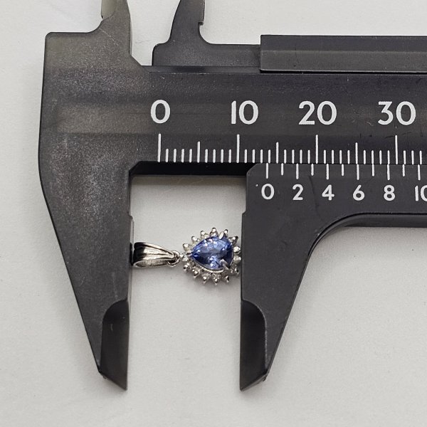 周囲にあしらわれたダイヤモンド(0.10ct)が光を反射し、サファイアの輝きをさらに際立たせる、洗練されたデザインです。