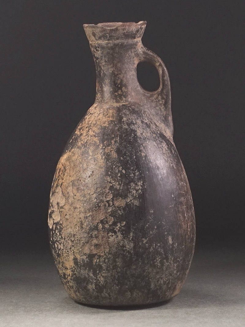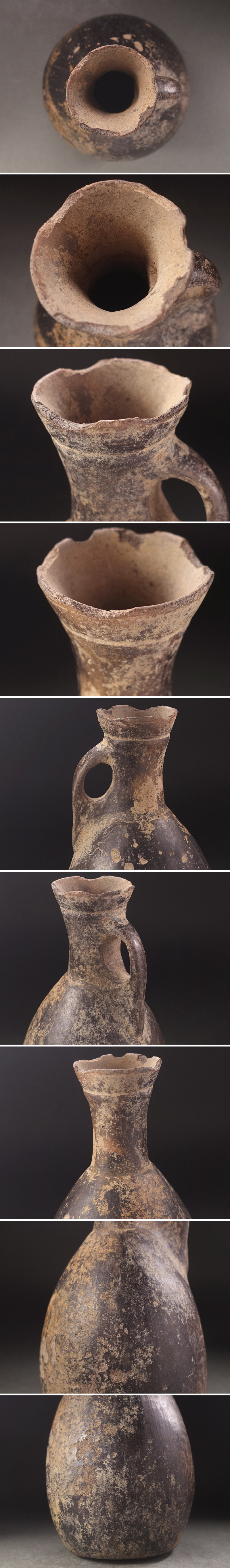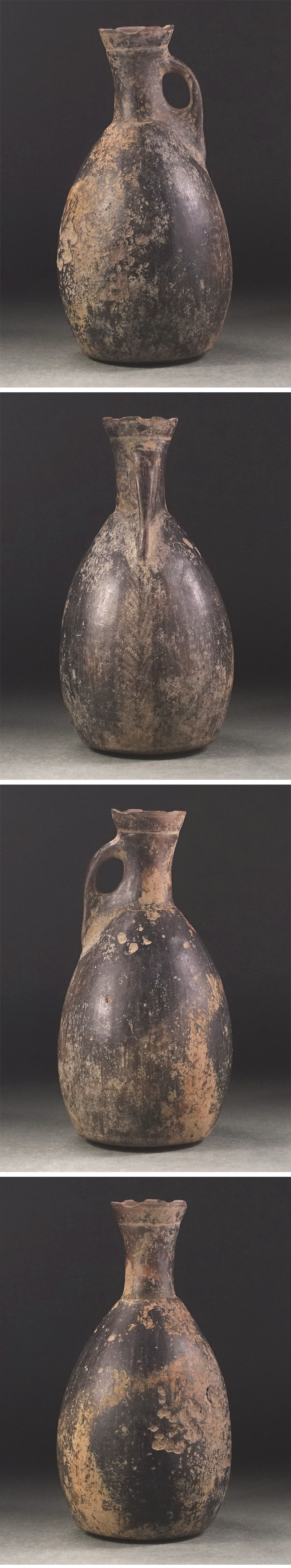 ∇花∇紀元前7~5世紀頃古代イタリア(エトルリア)陶器 黒色研磨土器 ブッケロ焼 刻線文把手付瓶(オルペ) 水差し 收藏