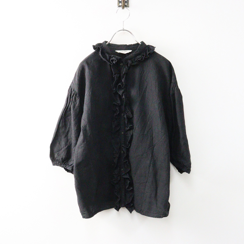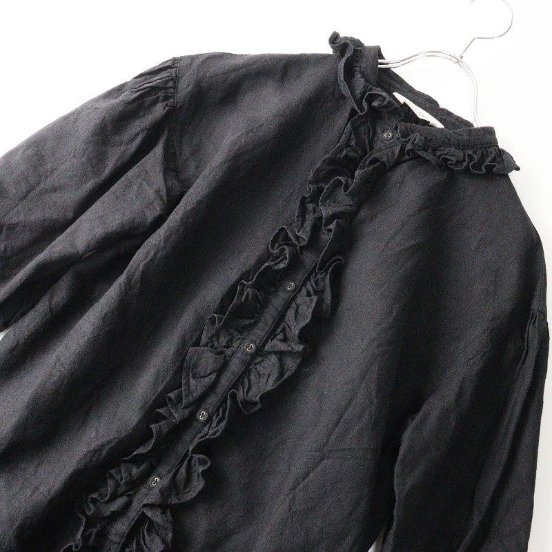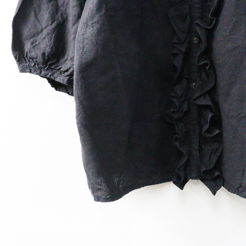 サマンサモスモス Samansa Mos2 SM2 Cross×Linen フリルブラウス F\ブラック パフスリーブ ギャザー クロスリネン【2400014653793】 收藏