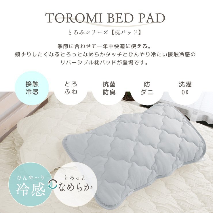 枕カバー 枕パッド ピローケース リバーシブル 接触冷感 ひんやり 冷たい おしゃれ 可愛い 抗菌防臭 防ダニ 洗える グレイッシュブルー 收藏