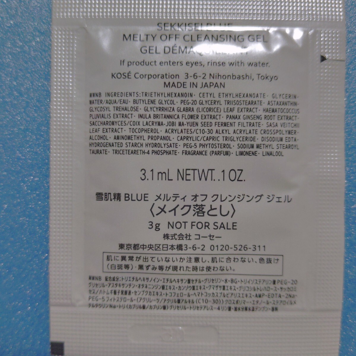 雪肌精 BLUE サンプル メルティ オフ クレンジング ジェル メイク落とし 3g 3.1ml 試供品 收藏