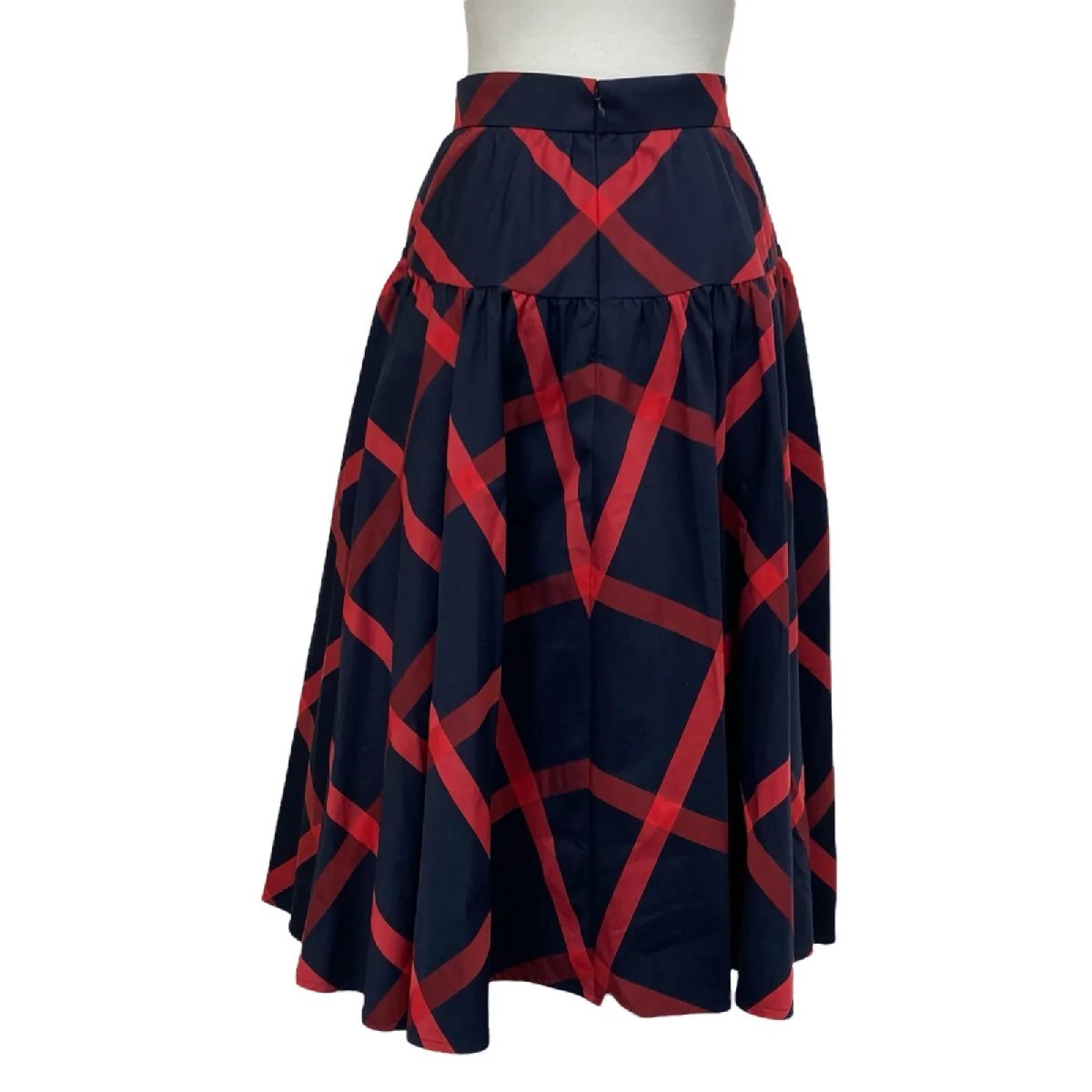 アナイ ANAYI ビックチェックギャザー スカート ロング ネイビー レッド 綿混 34、S、7号 レディース S5U231 收藏
