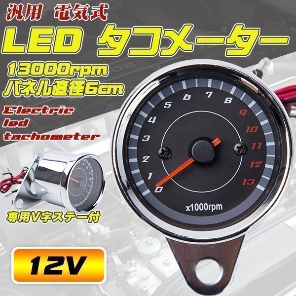 汎用 LED タコメーター 電気式 13000 12 V モンキー カスタム バイク カスタム ステンレス ドレスアップ バイク用品 メッキ 收藏