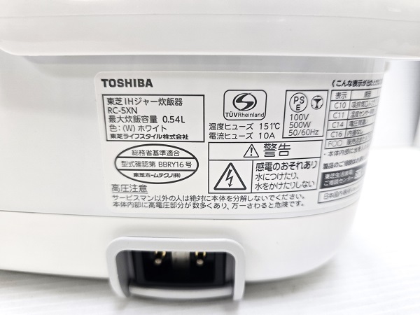 【中古品】 東芝 TOSHIBA IH方式 炊飯器 3合炊き RC-5XN 2020年製 ホワイト ○YR-18698○ 收藏