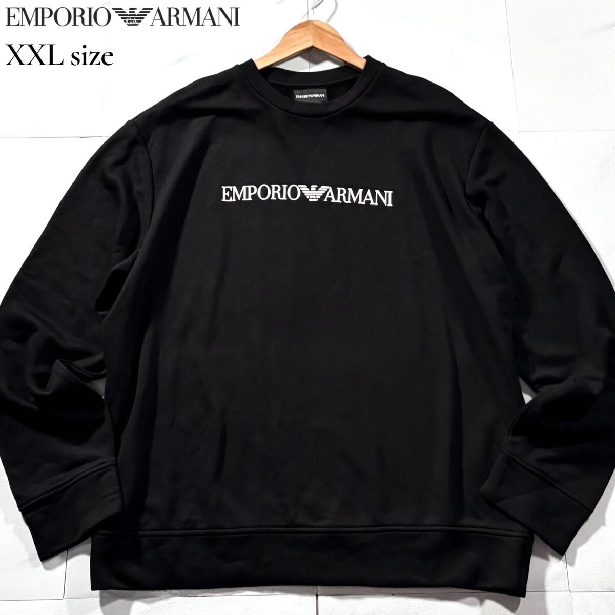 極美品/XXLサイズ●EMPORIO ARMANI エンポリオ アルマーニ トレーナー クルーネック プルオーバー 長袖 ストレッチ フロントラバーロゴ 3L 收藏