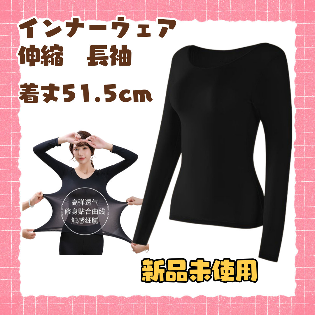 ◆新品未使用◆新品L着丈51.5cmインナーウェア 伸縮 暖か 長袖 下着 シャツ ブラック010210L 收藏