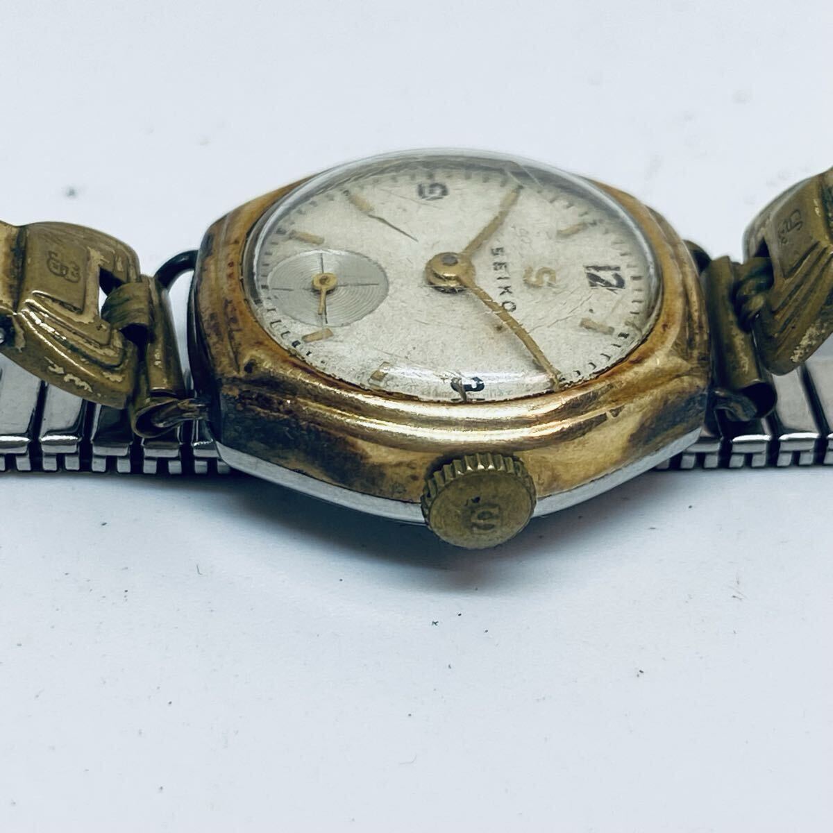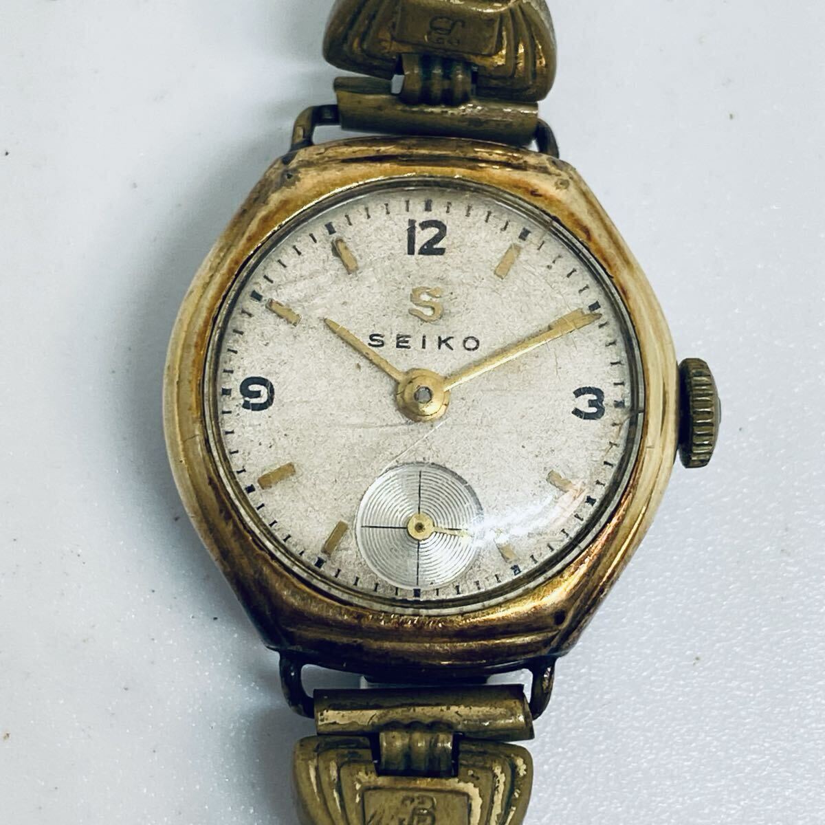 34550 セイコー SEIKO 手巻き 腕時計 スモセコ ヴィンテージ Sマーク ラウンド 貴重 14KGF 611321 アンティーク レトロ ジャンク 收藏
