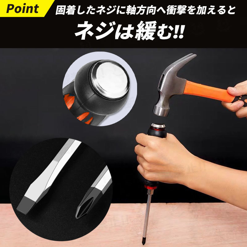 貫通ドライバー ショックドライバー プラス マイナス 工具 ネジ マグネット 7本 セット 衝撃 ドライバー DIY ハンマー ノミ タガネ 磁石 回 | |||