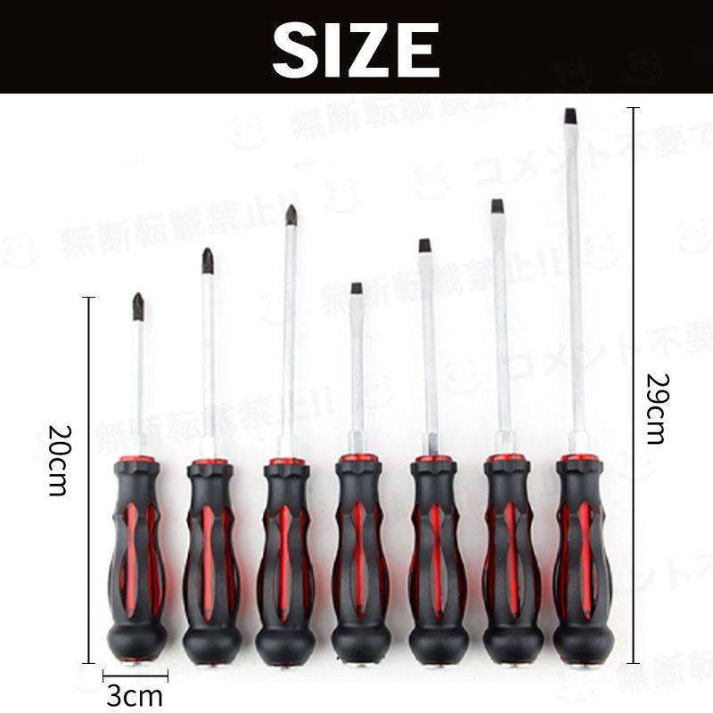 | 貫通ドライバー ショックドライバー プラス マイナス 工具 ネジ マグネット 7本 セット 衝撃 ドライバー DIY ハンマー 商品名:貫通ドライバー ショック ドライバー 7本 セット プラス マイナス マグネット 【商品説明】 ・固着したネジ外しに!! 貫通ドライバー 7本セットです。 ・貫通ドライバーは、先端から持ち手の後方まで金属軸が通る構造を持つドライバーです。 ・ハンマーで柄の後方部分を強く叩くことで、ビット先端に衝撃を伝えるさまざまな作業に活用できます。 ・六角軸 ボルスター付きですので、スパナやモンキーレンチと併用することが出来ます。 ・先端マグネット 磁気 付きですので、作業中のネジ落下を防ぎ、作業効率が上がります。 ・車 バイク 自転車のメンテナンスや 大工作業 DIY の 回す 締める 作業のドライバー機能としてはもちろん 簡易 タガネ ノミ としてもお使い頂けます。 【詳細情報】 プラスドライバー 3本 マイナスドライバー 4本 サイズ:20cm x 3cm ~ 29cm x 3cm 素 材:クロムバナジウム鋼 重 量:125g ~ 145g 状 態:新品・未使用品 ===== 複数個ご落札ご希望の方 ====== こちらの商品は、梱包の都合により落札1商品1個口での発送です の仕様上、 1落札複数個であっても1落札につき発送は 1個口となってしまうため、複数個口での発送ができません。 【 必ず落札1個でご入札ください 】 複数個ご希望の場合は、 必要分個別にご入札ください ====== 1落札で複数個落札された場合 ====== 1個目に限り送料無料 & 匿名配送で配送いたします 2個目以降は通常の郵便・宅配便での配送となりますので、 有料+送り先住所の開示が必要となります 【配送方法】 ■配送方法:日本郵便 ※郵便物としてお届けします。 ※封筒(簡単な梱包)でのお届けとなります。 ※ロットにより、パッケージの形状が少し異なる場合があります。 | |||