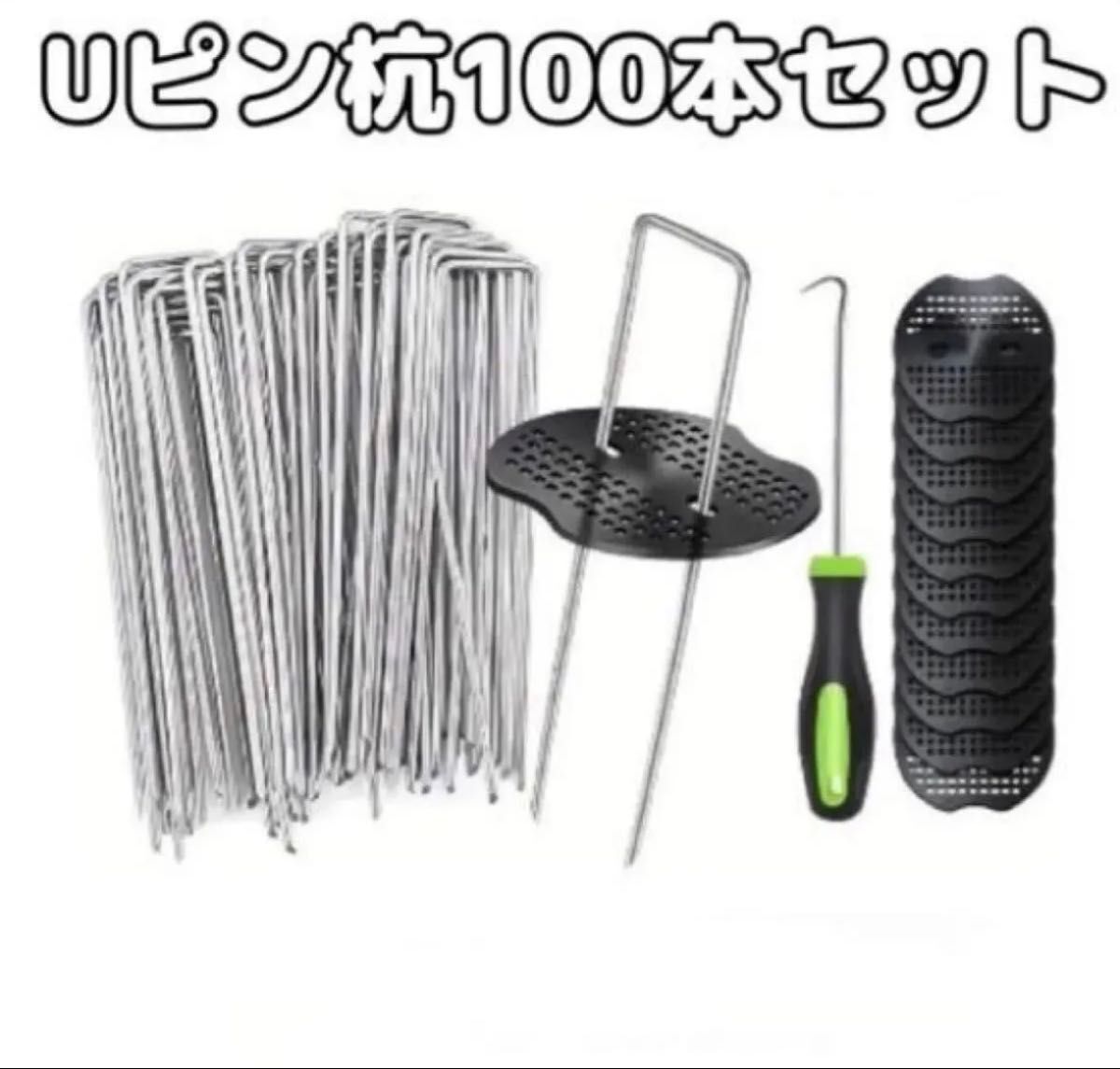 Uピン杭 園芸 黒丸付き 10cm 100本 防草シート 除草シート 人工芝 固定用 押さえピン ガーデニング 園芸 農業 庭 雑草 收藏