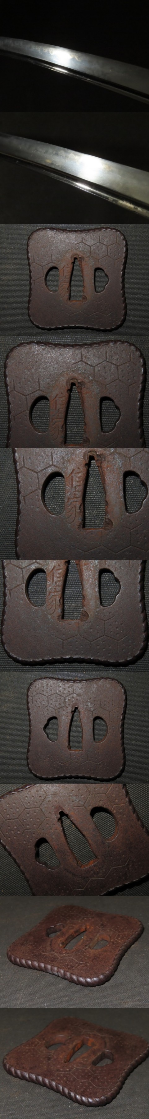 二尺三寸刀 相模国綱廣 拵 江戸 縁に銘有:宋眠 101.5×刀身71×反1.5×元幅3.2×元重0.7x先重0.5cm 1.34㎏ 收藏