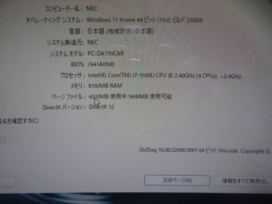 ◆ メーカー : NEC LAVIE DA770/C