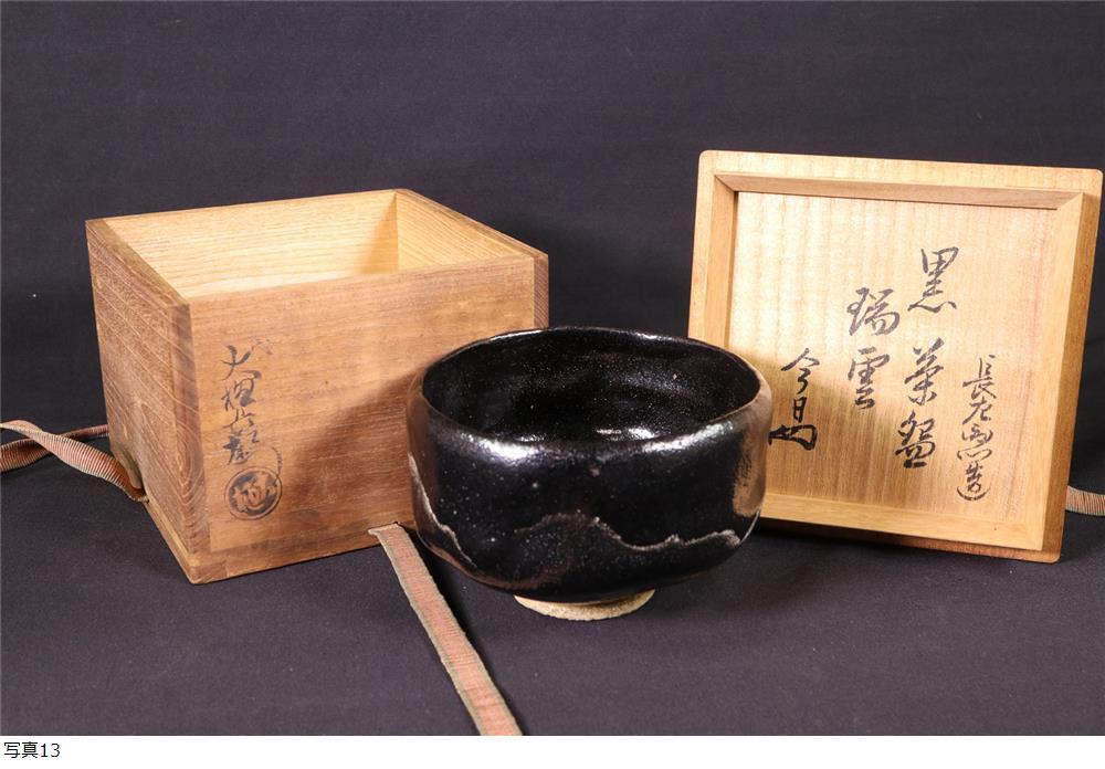 | 大樋長左衛門 淡々斎書付「瑞雲」黒茶碗 共箱 九代 大樋長左衛門 茶道具 |