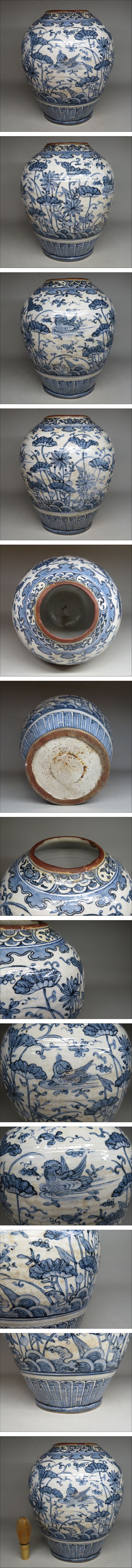 「都内コレクター所蔵品」ベトナム(越南)時代古陶 安南染付蓮池水文大壷 安南焼 東南アジア古陶器 lot:21228 收藏