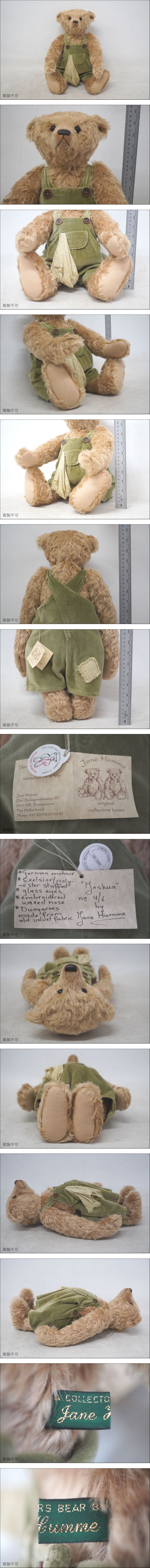 【M02-24】 Jane Humme ジェーン・ヒュメ Joshua テディベア 4/6 アーティスト 作家 モヘア ガラスアイ 紙タグ付 ぬいぐるみ 人形 保管品 收藏