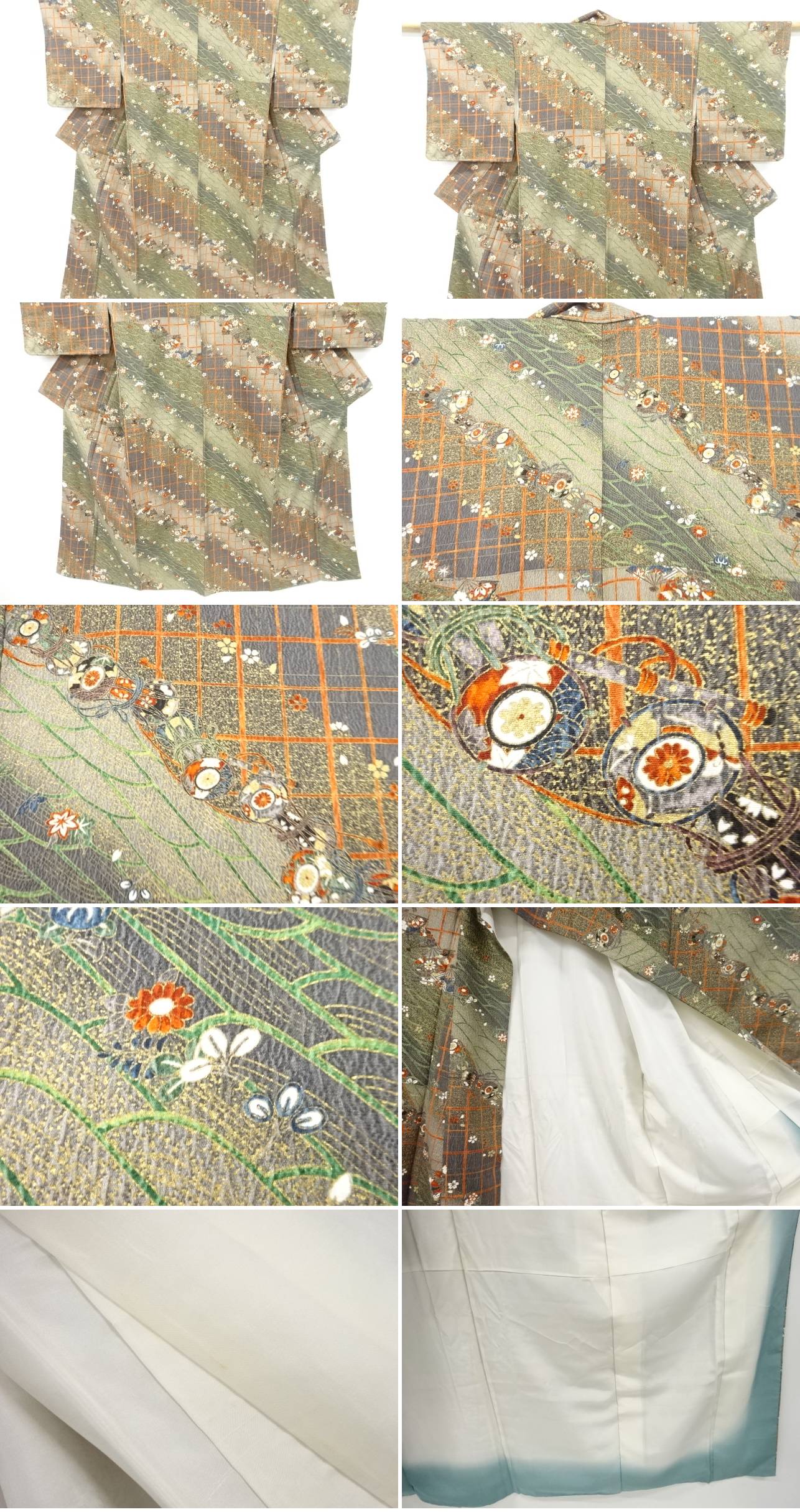 | お着物の状態をできる限りお伝えできるよう努力しておりますが、当店で出品の商品は全てアンティークになります。 一品一品丁寧に検品の上、出品させて頂いておりますが、稀に小さな見落としや、アンティーク特有の経年に伴う汚れや傷のある場合もございますので、アンティーク・中古品にご理解ある方のみのご入札をお願い致します。 寸法に関しましては、一品一品手作業での採寸であり、性質上生地の伸縮性もございますので、若干の誤差はご了承ください。 ごく稀にですが、樟脳やアンティーク特有の匂いがある場合がございます。 匂いに関しては、商品コメントには記載しておりませんので、ご理解の上ご入札下さい。 はぎれ商品につきましては、解き商品が多くなっております。 生地端に縫い糸の残りが多く残った状態での出品となります。 ご理解の上でのご入札と、ご自宅でのお手入れをお願い申し上げます。 | |