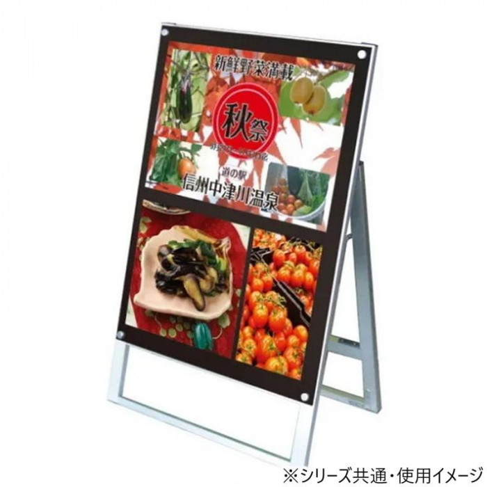 | 仕様 | 本体フレーム:アルミ押出し フレーム・化粧ビス:アルマイト仕上 屋内・屋外可(ポスターに耐水加工が必要) ポスターサイズ:W728×H1030mm |