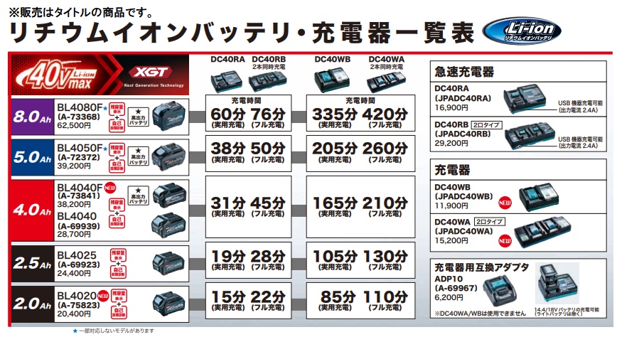 マキタ makita40Vmax充電器 DC40WB JPADC40WB88381786690■40Vmax充電器特長・マキタ独自のスマートシステム・高負荷時の連続作業時間約2.2倍※マキタ社基準による・バッテリ寿命約50%アップ※マキタ社基準による・バッテリ最大出力アップ