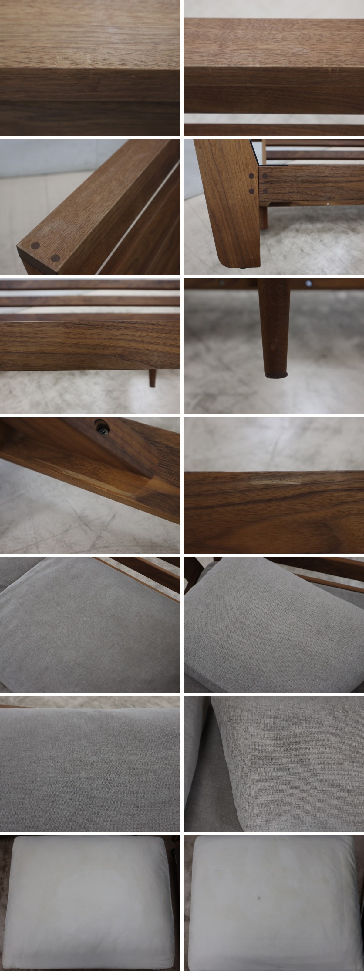 【仕様】 サイズ:約 W200 D85 H87・SH39cm、背クッションなしの高さ62cm ※実寸のため、多少の誤差はご了承ください。 材質:ウォールナット、ファブリック 参考価格:737,000 円 |