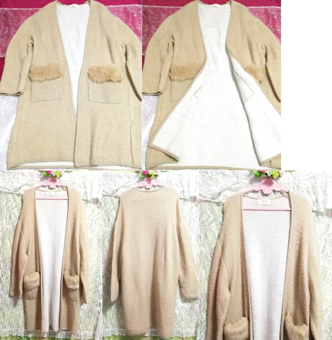 亜麻色100cmロングフワフワポケット/カーディガン/羽織 Flax color 39.37 in long fluffy pocket cardigan 收藏