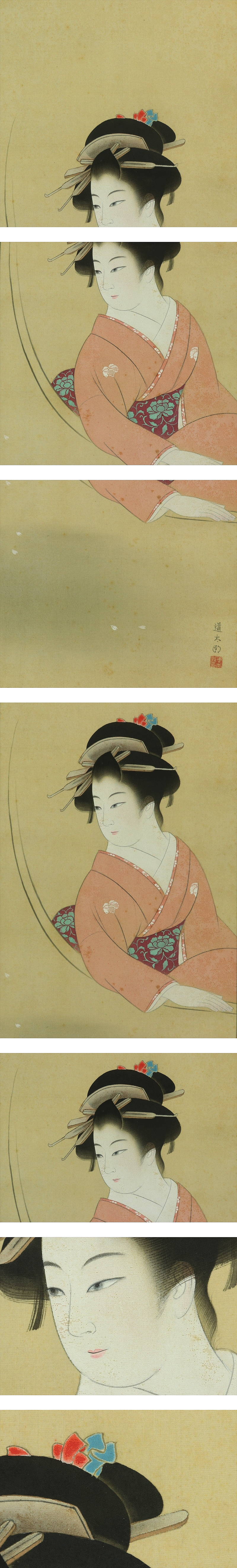 中村道太郎 日本画家。中村大三郎の弟。生没年は不詳。 本紙は、染み、ヤケ、剥落があります。 表装は、染み、擦れ、ほつれがあります。 【サイズ】 作品 横約24.5cm×縦約60.5cm 表装 横約33cm×縦約148cm |