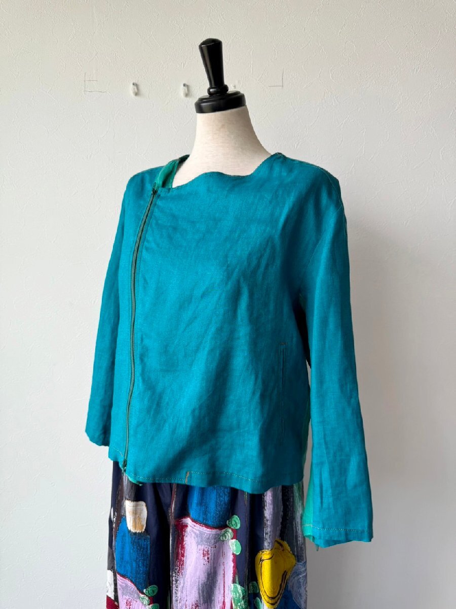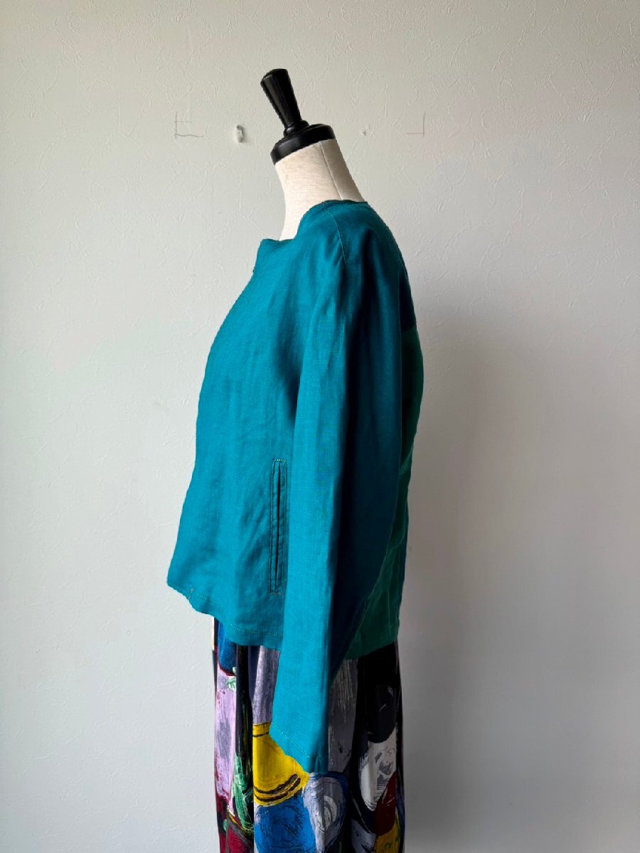 インブリード 中古 レディース トップス アウター 羽織り 麻 グリーン 美品 收藏