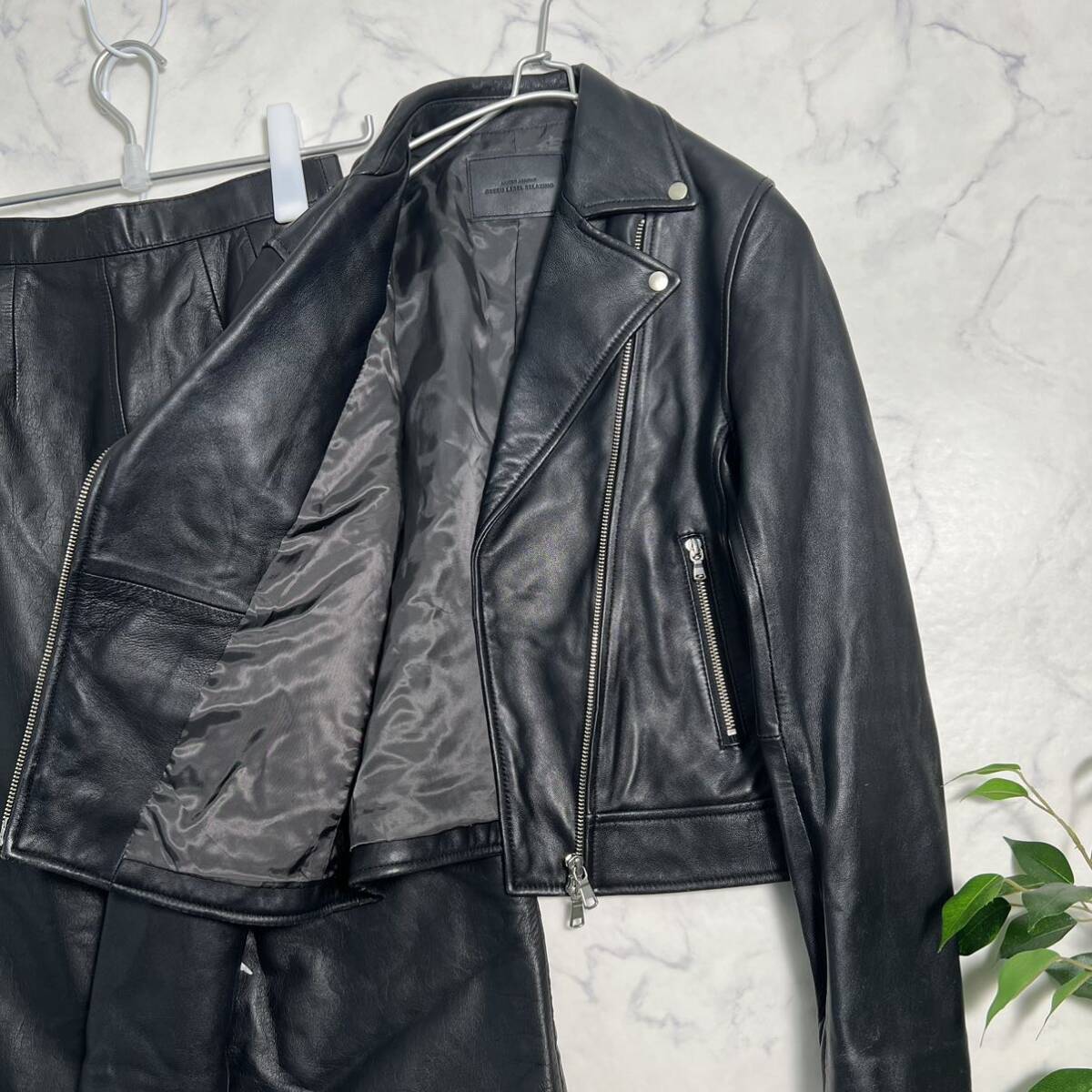 ユナイテッドアローズ 本革 レザーセットアップ レザージャケット ライダース ロングスカート 上下 黒 ブラック 羊革 レディースS相当 收藏