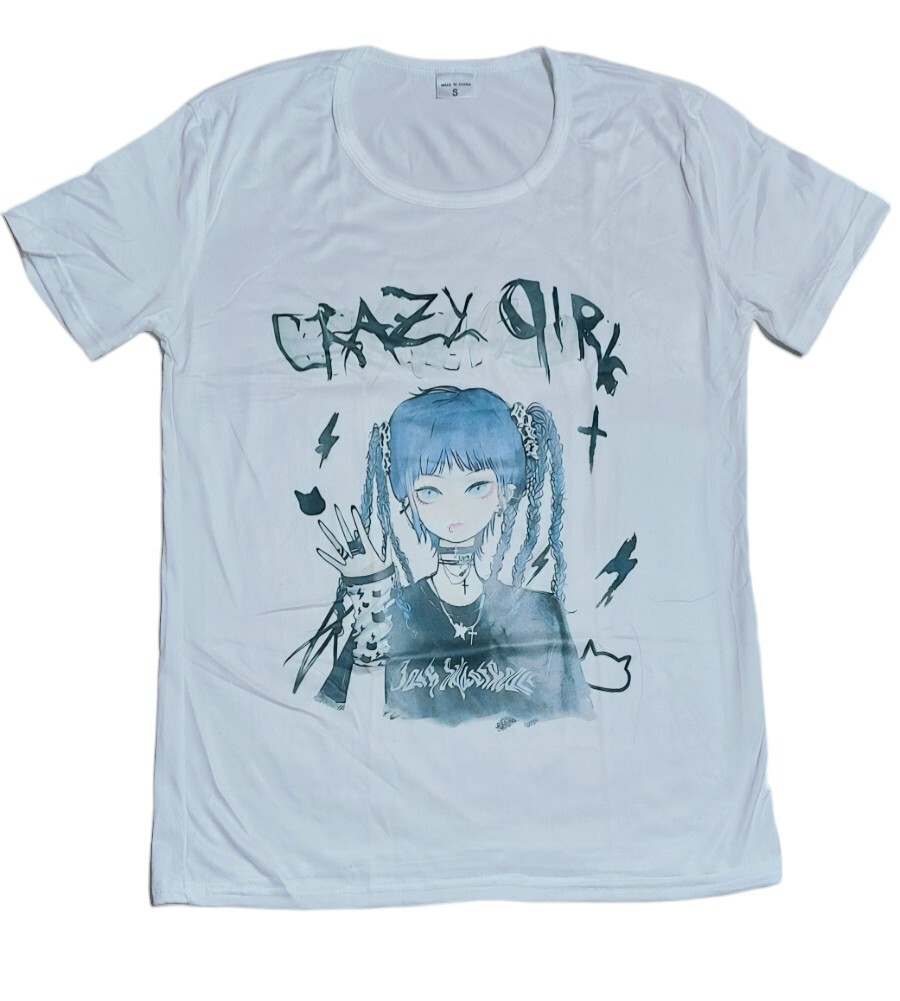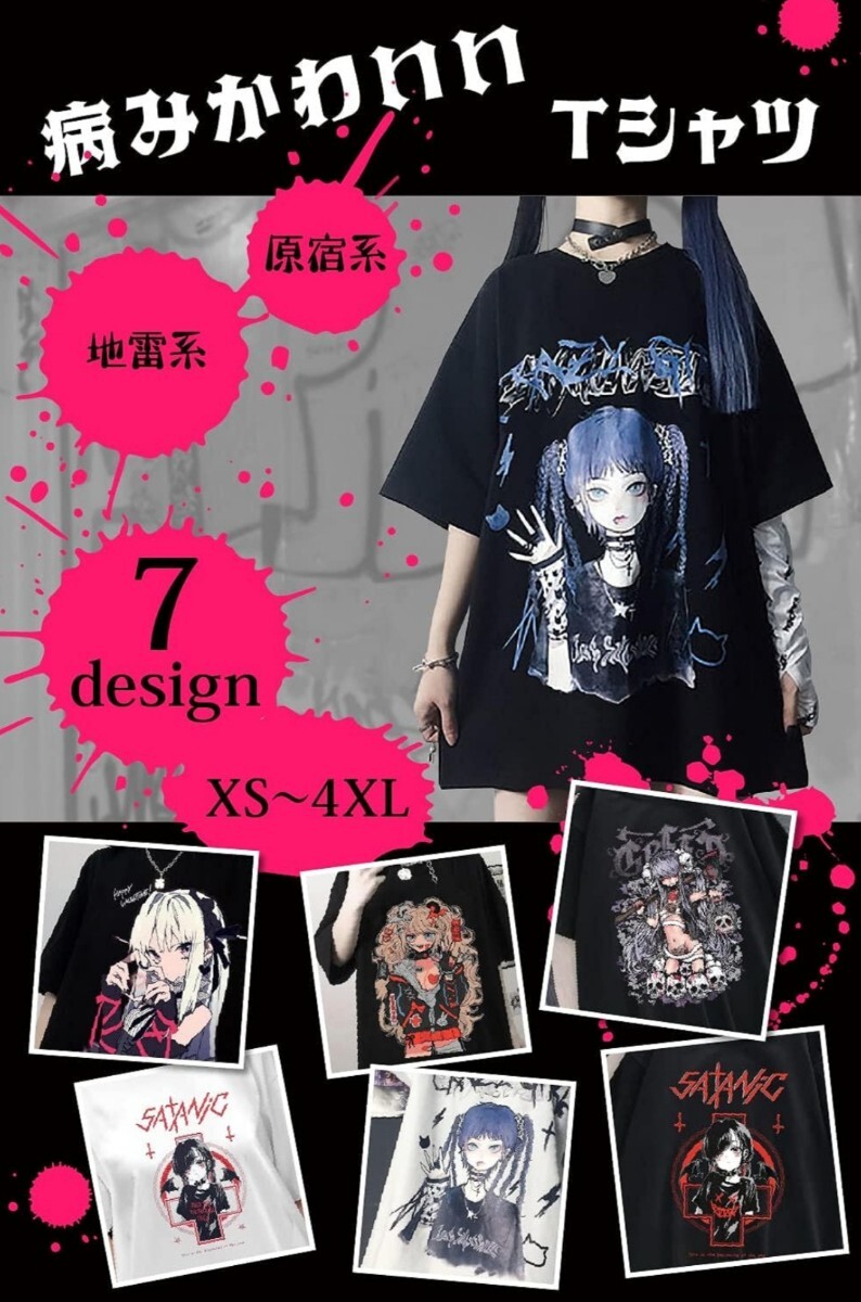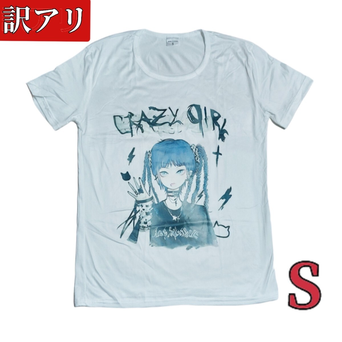 訳アリ 病みかわTシャツ 闇カワイイ 地雷系 量産型 ゴスロリ 夏 半袖 S ホワイト クルーネック イラスト プリント 病みカワ 收藏